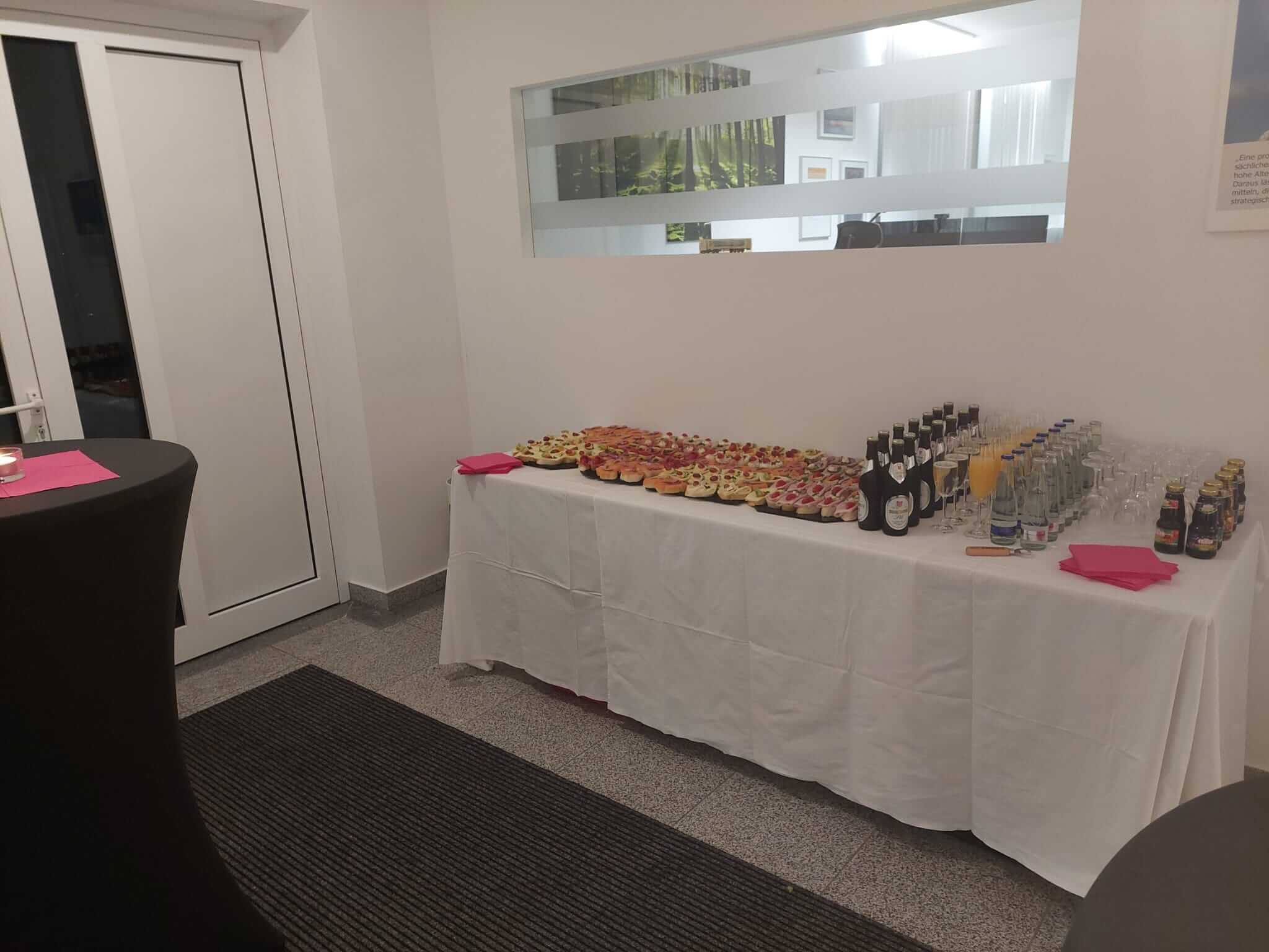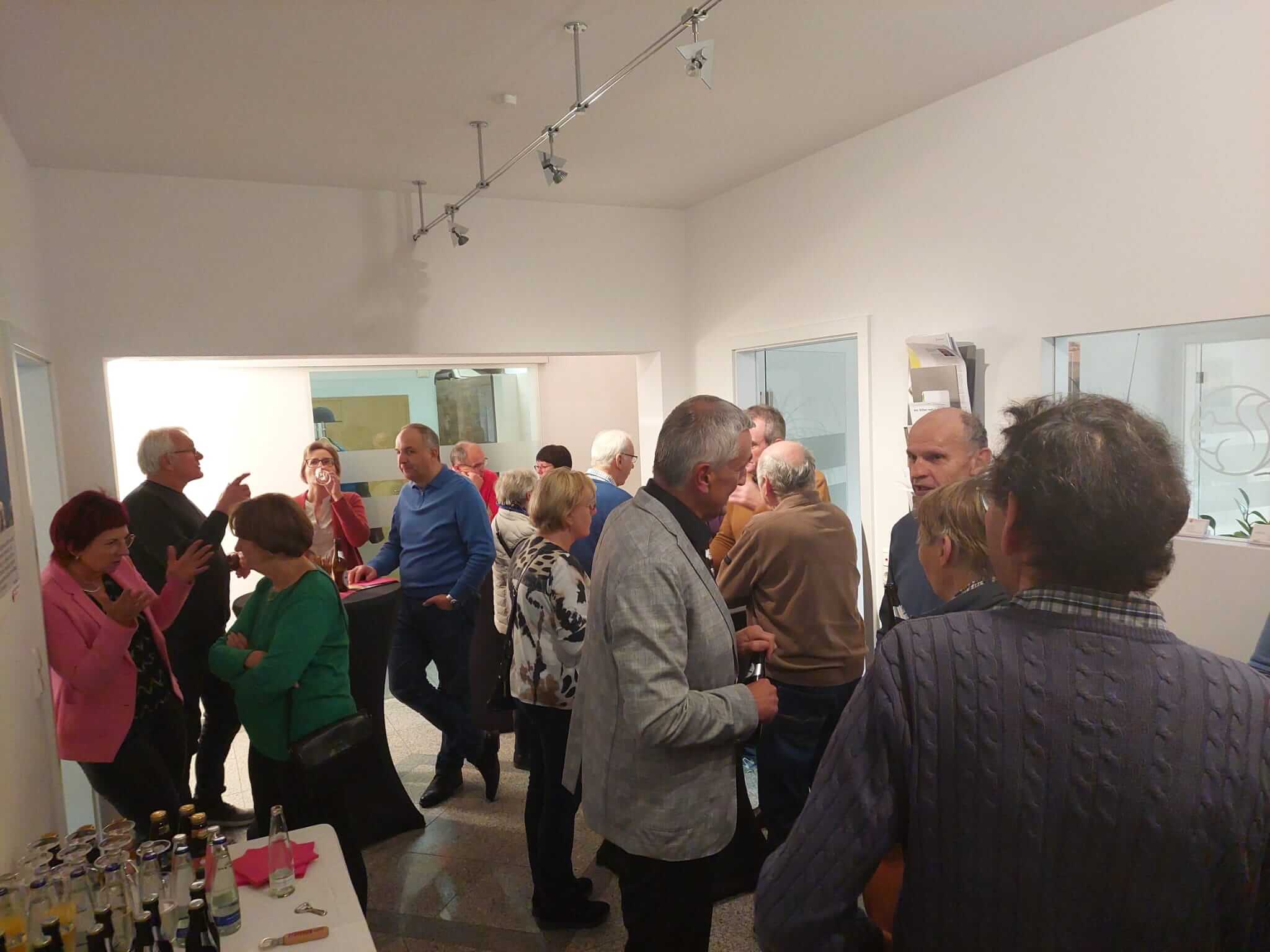 Die Teilnehmer im Gespräch bei einem kleinen Imbiss